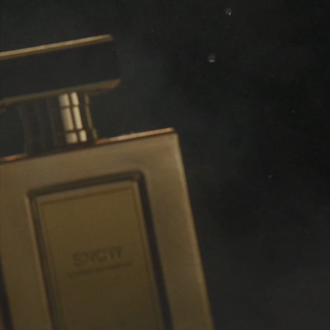 Beneath the chill, warmth emerges — geranium touched with coffee, melting into a storm of nutmeg, black pepper, cardamom, leather, incense, and myrrh.